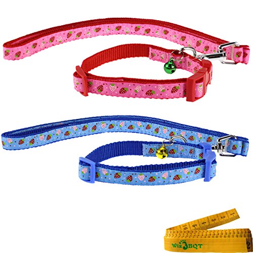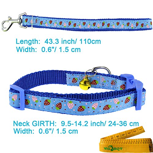 2 Pcs Cat Dog Rabbit Pet Breakaway Collar and Leash Set for Cats Dogs Rabbits Pets Walking, Blue and Pink Strawberry