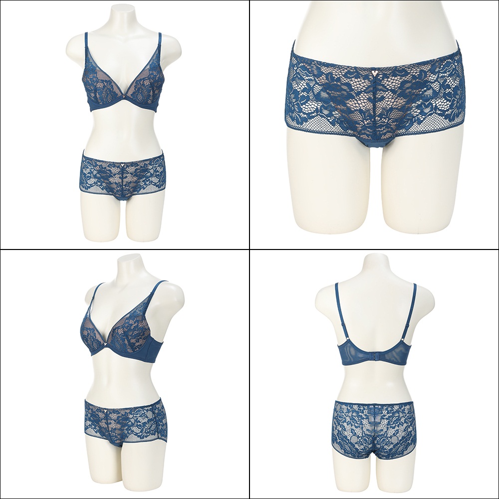 풀레이스 프리미엄 딥브이 브라와 레이스 팬티 세트 제품으로 은은하지만 고급스러운 다크븚루 레이스를 매치한 디자인으로 75A,80A75B 에는 기본 패드가 내장된 여성 볼륨업 브라 제품입니다 . 팬티는 브라와 동일한 레이스를 앞판에 매치하였고 팬티 라인이 드러나지 않게 레이스 원단을 매치한 여성 팬티 입니다 전 연령층에서 인기인 아이템!! |