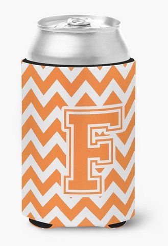 Caroline's Treasures CJ1046-FCC Letter F Chevron Orange and White Can or Bottle Hugger, Multicolor