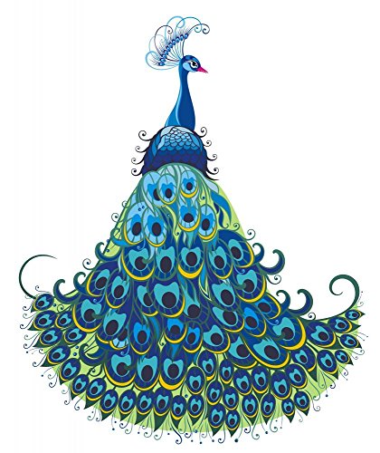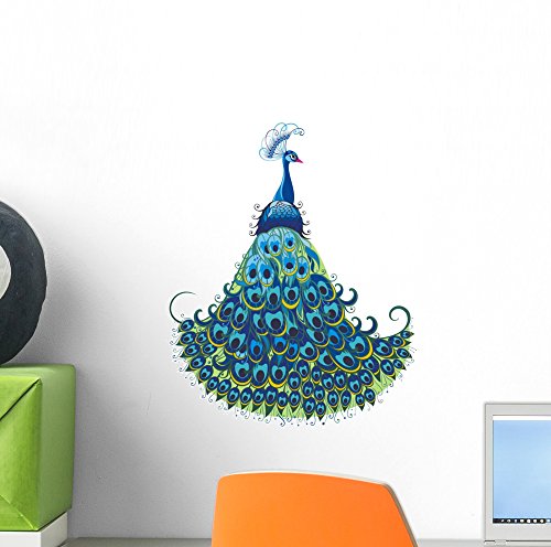 Wallmonkeys WM48262 Peacock Vector Background Peel and Stick Wall Decals (12 in H x 10 in W)