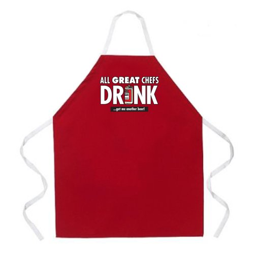 Attitude Aprons Fully Adjustable "All Great Chefs Drink" Apron, Red