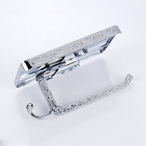 Toilet Paper Holder with Shelf Bathroom Accessories Reversible Wall Mount Phone Holder Toilet Paper Holder Roll Cell Rack Tissue Carved Vintage Style Chrome