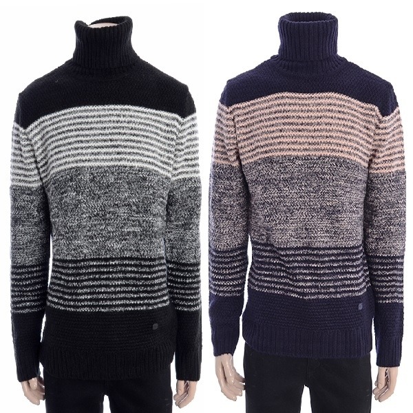 남성 배색 스트라이프 터틀넥 니트 입니다.