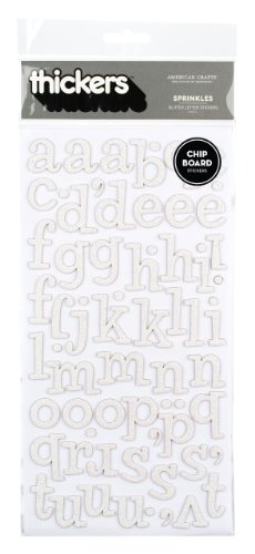 American Crafts Thickers Glitter Chipboard Letter Stickers, Sprinkles White
