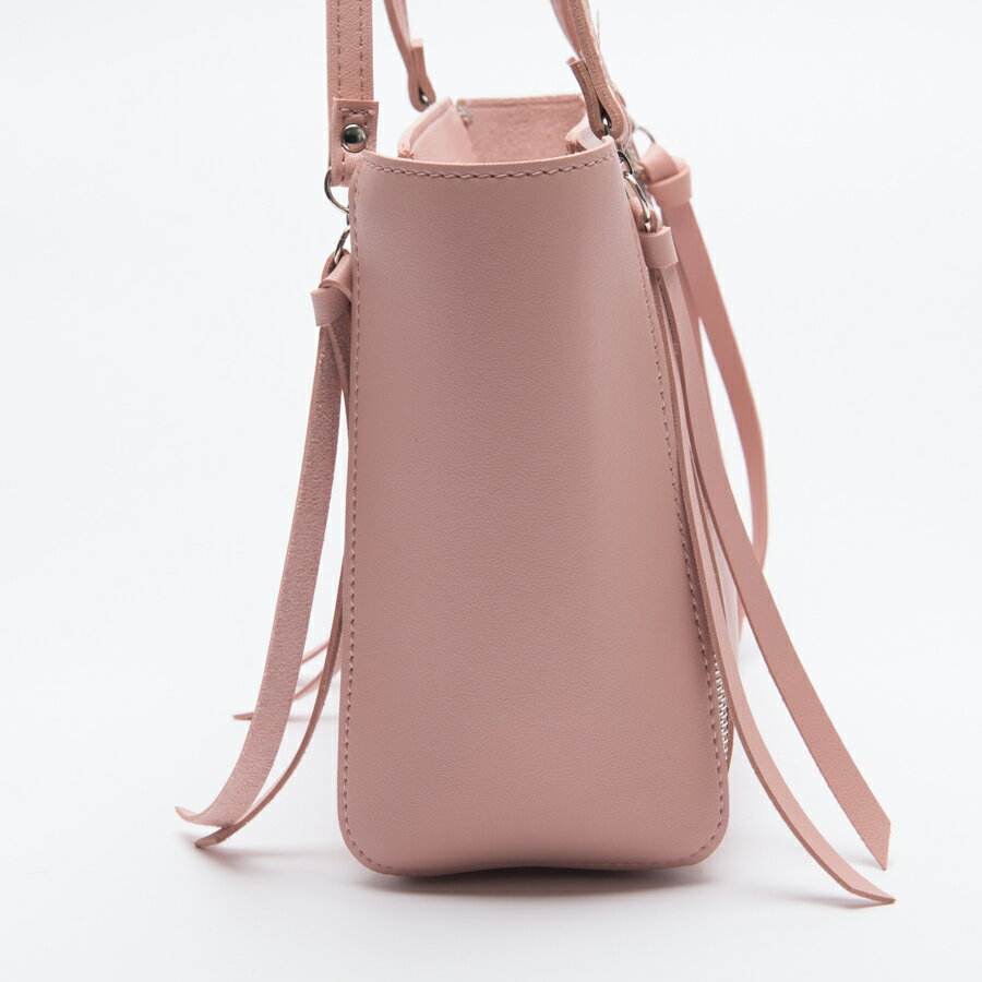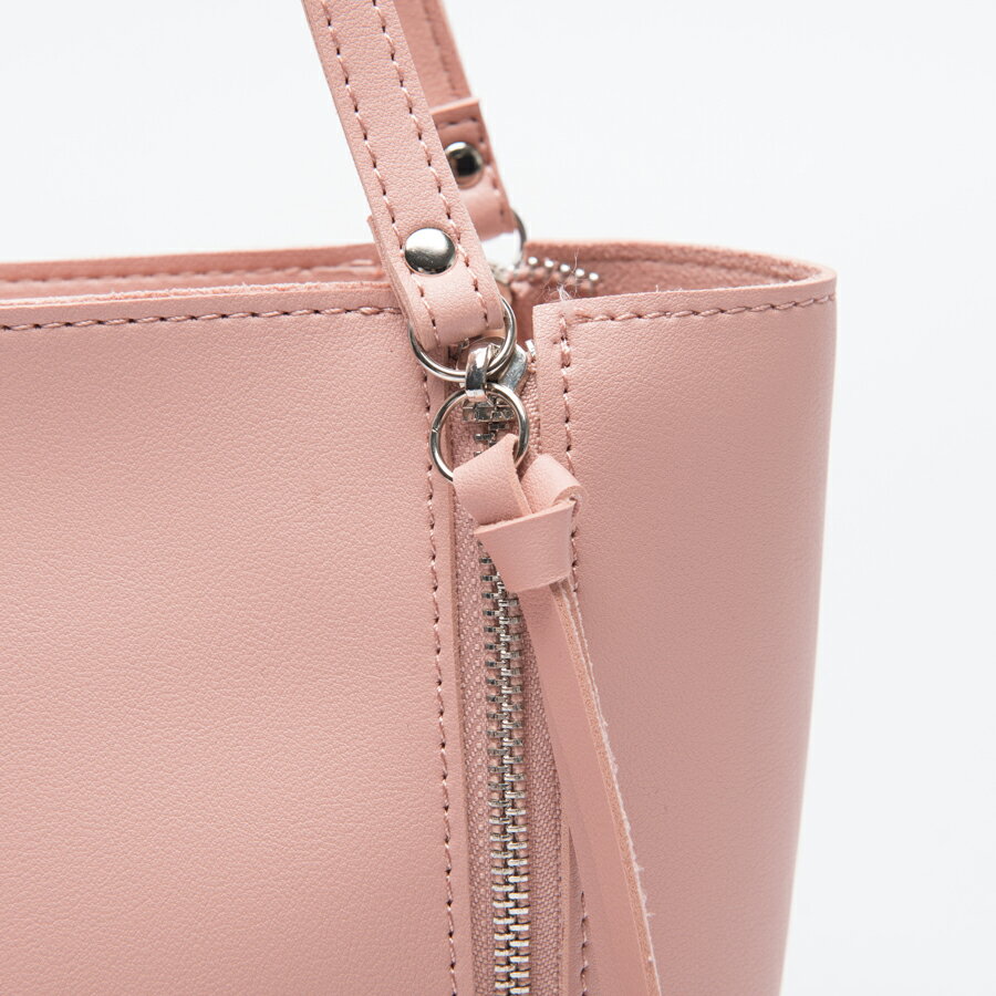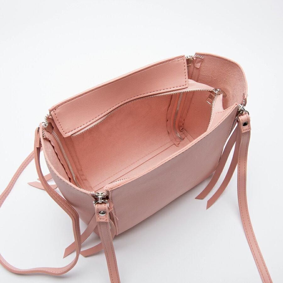 ファスナーデザインが特徴で長めのリボンが可愛らしいショルダーバックです。