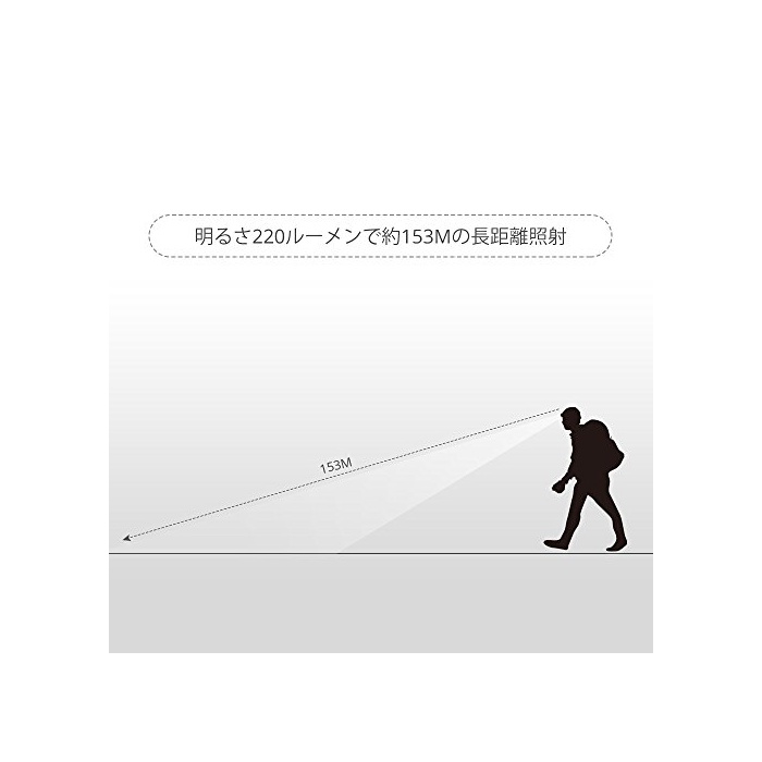 밝기220루멘에,조사 거리는 최대 약153미터입니다.와이드 라이트와 스포트라이트의 2패턴을 대비해 있습니다.원터치로 diffuser를 열 수 있습니다.상황에 따라 배광패턴을 변경할 수 있는 독특한 시스템.