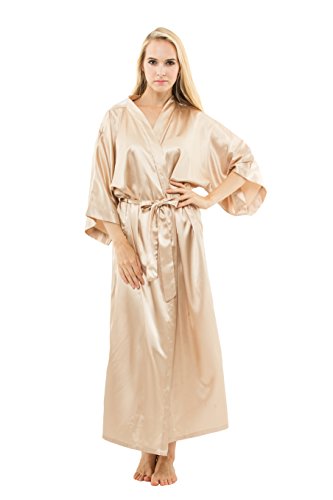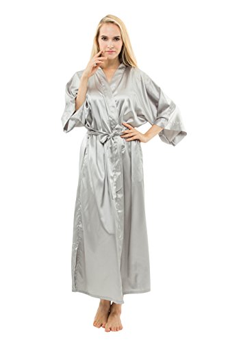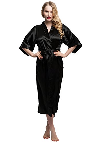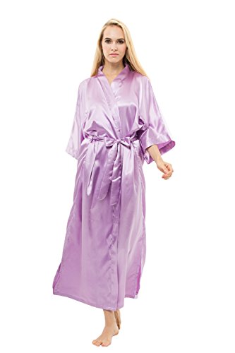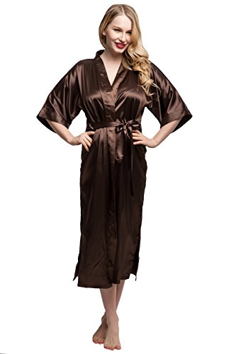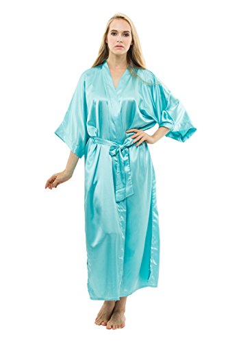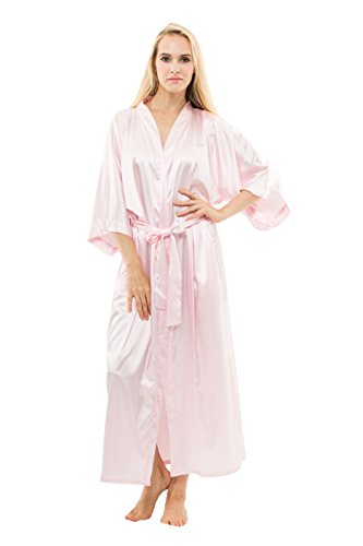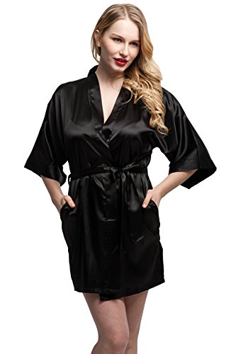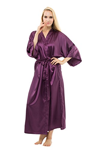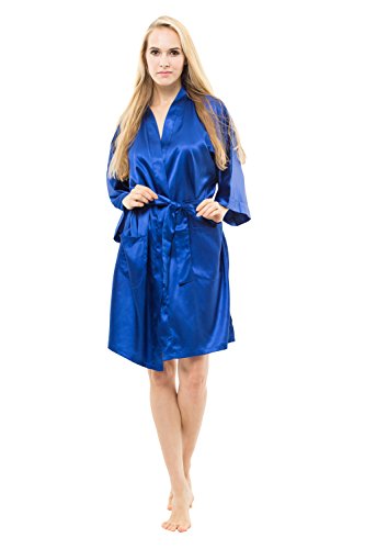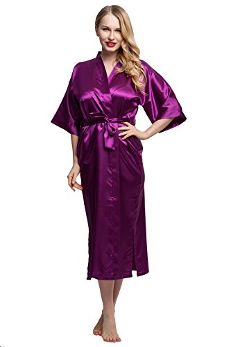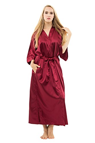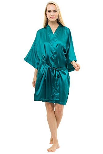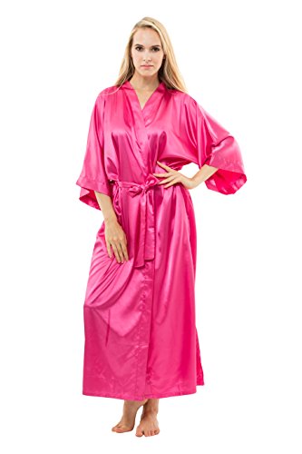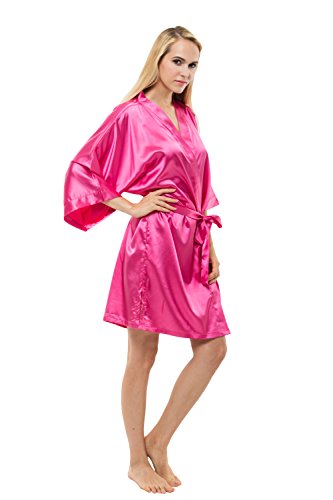 KimonoDeals Women's Soft Elegant Solid Color Kimono Robe-Watermelon Red, Short L