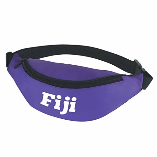FIJI Large Zippered Front Pocket Sorority Polyester Fanny Pack. Measures 14" W x 5 1/2" H. Main Zippered Compartment Adjustable Waist Strap 44" Maximum Belt Size