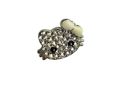 Silver Hello Kitty logo Swiss Zirconia gem brooch pin. Features a silver Hello Kitty logo with clear crystals throughout. Brooch measures .5 inches tall and .5 inch in width.