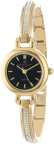 Charles-Hubert, Paris Women's 6825-G Classic Collection Gold-Plated Black Dial Watch