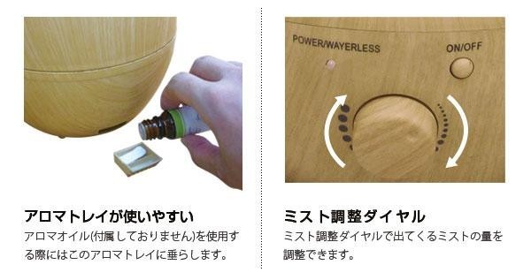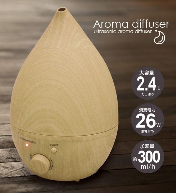 | しずく型の美しいフォルムの超音波式アロマ加湿器です。木目調のデザインでどんなお部屋にも馴染みます。 |