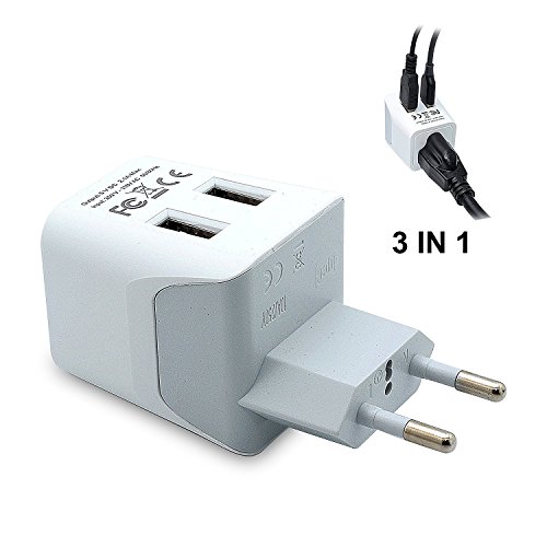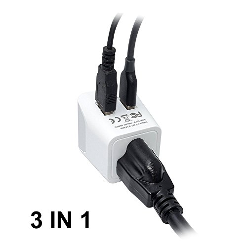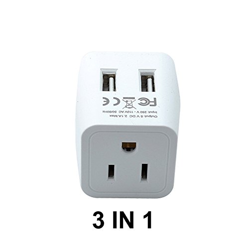 - 3 in 1 Input: Accepts the standard N American 2 or 3 prong flat pin plug (including polarized) - No Messy Universal Outlet + Dual USB Charges Upto 2.4A Ideal for iPhone, iPad, Galaxy, & other Chargers