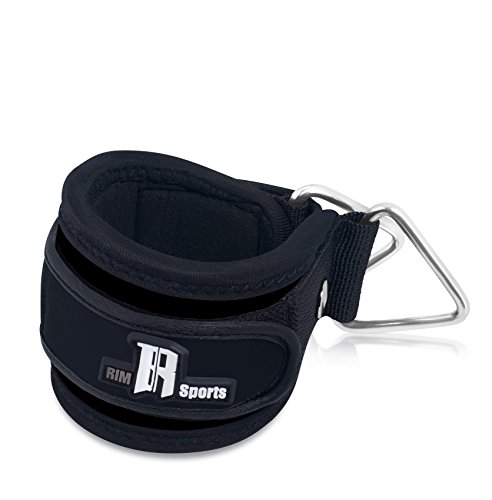 RIMSports ANKLE STRAP ADVANTAGE Some key features of our newly designed ankle strap include the neoprene padding that cushions the back of the ankle, making for a more comfortable workout. The elongated velcro strap was created in such as way as to wrap around the strap, so as to give added support when lifting heavier weights. The double triangular loops on either side of our ankle cuff were uniquely fashioned to allow for ease of use when threading the strap, while also providing unmatched support as you push your cable exercises to the max! RIMSports’ “HOW TO” To get the most out of your new RIMSports ankle strap follow the below instructions: Step One: Attach our RIMSports interchangeable ankle strap to a cable-resistance machine or resistance tubing via the triangular loops. Step Two: Connect the easy open-close metal clip from your machine to the secure triangular closure on the ankle strap to begin your exercise. Step Three: Hold on to your cable machine and move your leg up to waist level and then stretch it backwards, squeezing your glutes as you increase your reps. RIMSports ANKLE STRAP FEATURES - Wide padded strap and durable nylon construction with criss-crossed stricting.