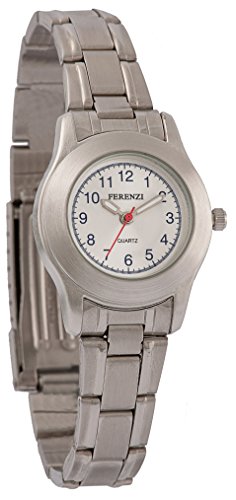 Ferenzi Women's | Classic Brushed Metal Silver Sunrail Face Thin Watch with Red Seconds Hand | FZ12501