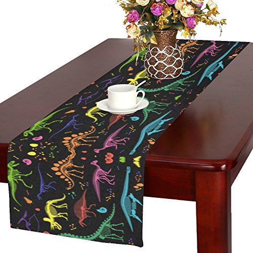 -. Title : InterestP.R.Int Skeleton of Dinosaur Fossil Long Table Runner 16 X 72 Inches, Colorful Animal Rectangle Table Runner Cotton Linen Cloth Placemat for Office Kitchen Dining Wedding Party Home Decor