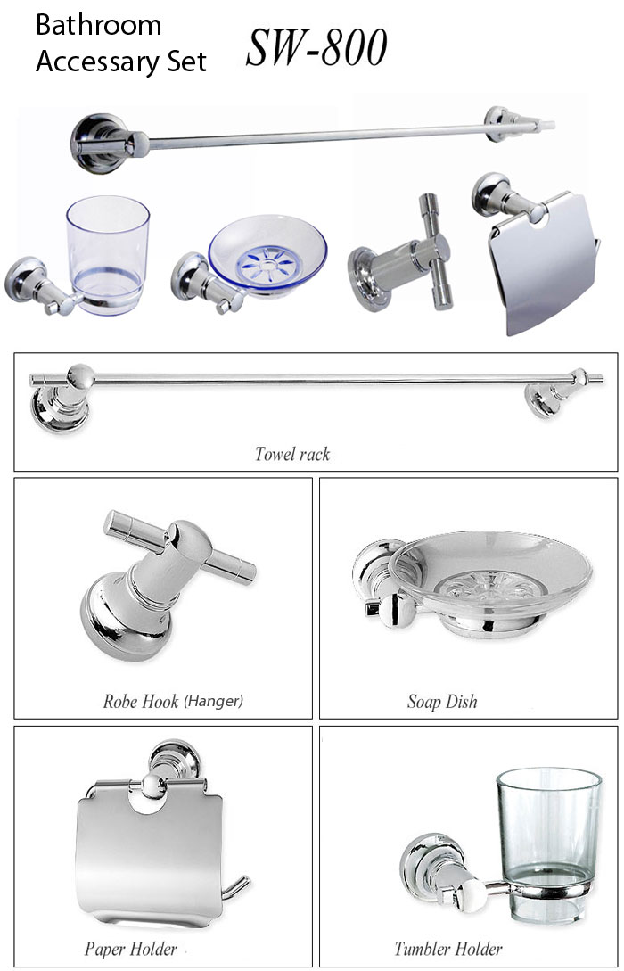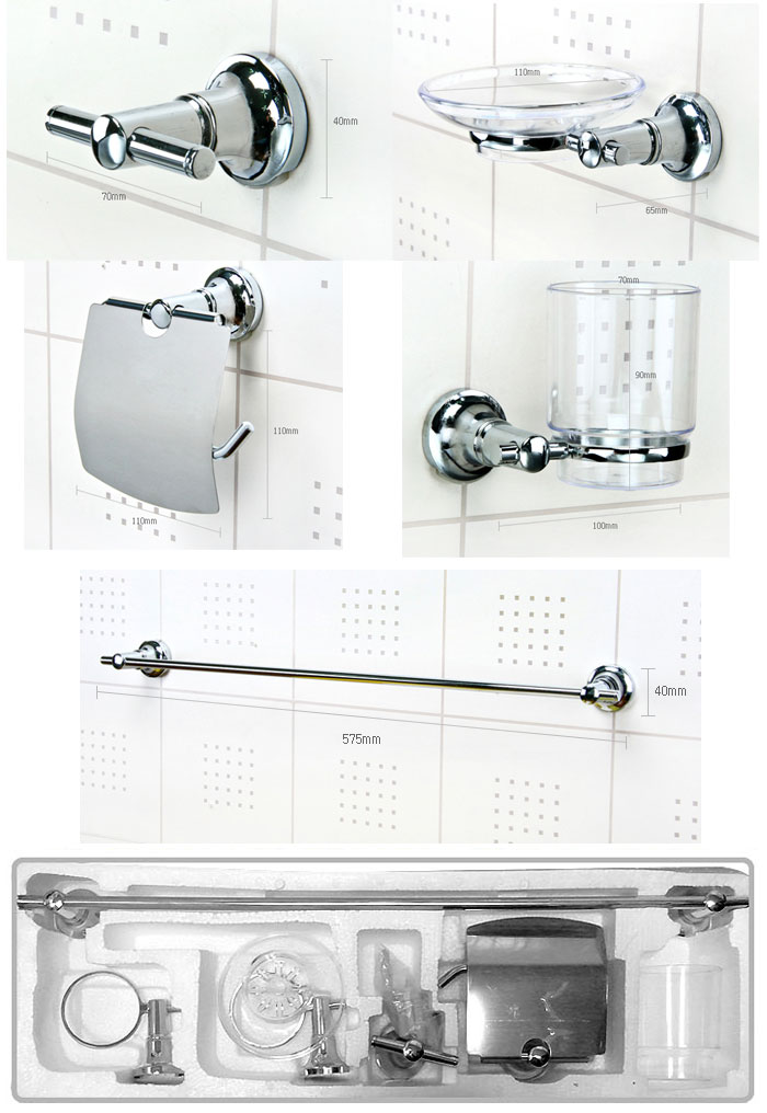 Quantity : 1 set (Towel rock, Robe Hook, Soap Dish, Paper Holder, Tumbler Holder)