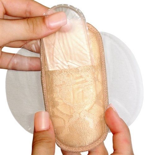 Foam pads covered with lace fabric, with pockets for silicone inserts and vinyl flaps for inserting bra straps. Advisable for full figured women who wear C cups or larger. Can be used with or without the silicone inserts.
