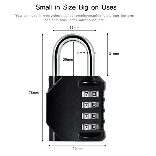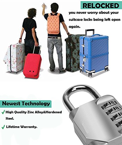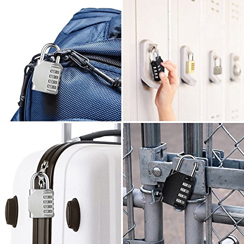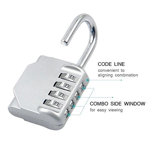 -. Feature : 【UNBELIEVABLE DEAL】Combination lock set includes 2 zinc alloy 4-digit resettable combination travel locks;two free Metal Travel Suitcase Lage Tags(Silver) . / 【Durable Material & Advance Design】Be made of zinc alloy and plated steel. Anti rust,weather proof,small volume,light weight,these combination lockers have more advantages compare to key lockers,they can'not be unlocked easily. / 【Multiple Usages】Everyday use padlock to keep your valuables safe out of harms way. Use on lage,cabinets,jewellery boxes,gates,doors,school gym locker,filing cabinets,toolbox and so on. / 【Keyless Lock & Easy To Set Up】Hassle free when you left the key at home or elsewhere. Setting or re-setting your own combination by 5 steps,it is straightforward to set up your own combination. / 【High Security】 4-digit proivdes 10000 combinations that are more difficult to crack than 3-digit locks.The lock is sturdy which can not be removed by human force.