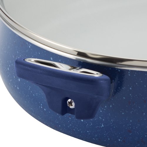 New Traditions pairs the time-tested trust and reliability of Farberware with colorful, updated style that’s ideal for busy homes and family kitchens, and this Farberware New Traditions Speckled Aluminum Nonstick 12-1/2-Inch Covered Skillet with Side Handles is the perfect example. Crafted from high-performance aluminu,, the vibrant skillet boasts a colorful speckled porcelain enamel exterior that adds a warm, table-ready touch, and the skillet features two rubberized side handles in matching colors that make it easier to transfer the pan between kitchen stations. It’s ideal for preparing an asparagus frittata or breaded pork chops. The skillet’s distinctive, long-lasting white nonstick interior provides greater visibility during the cooking with excellent food release and easy cleanup, and the shatter-resistant glass lid makes it easy to monitor simmering sauces without losing heat or moisture. Oven safe to 350°F, this lively skillet makes a refreshing addition to cookware sets and other specialty pots and pans in the Farberware collections.Feature