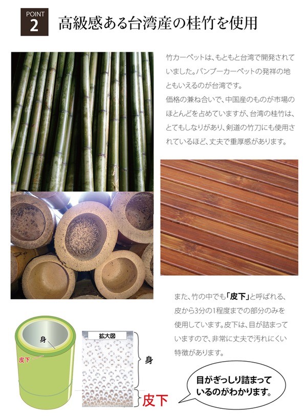 【素材】表地=竹 裏地=合成ゴム ヘリ=ポリプロピレン100%
