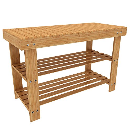 -. Title : Ufine Bamboo Wood Shoe Bench 2 Tiers Entryway Shoe Storage Rack Shelf Organizer Bench Seat