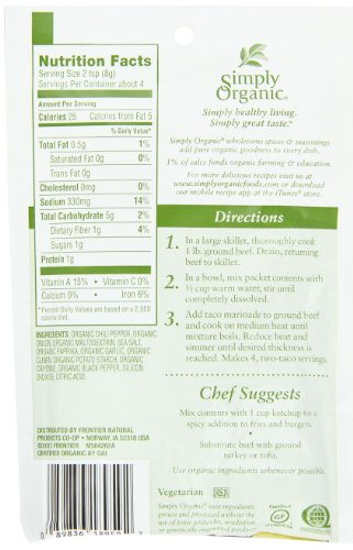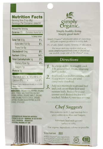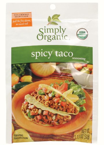 Simply Organic Spicy Taco, Seasoning Mix, Certified Organic, 1.13-Ounce Packets (Pack of 12)