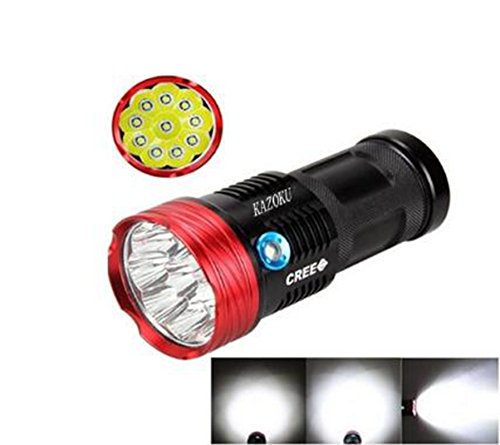 YRLED High Intensity Incandescent Illumination Flashlight (10Cree XML T6 High Power LED Flashlight Red And Black)