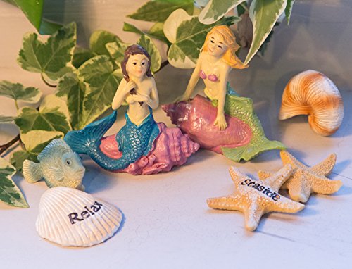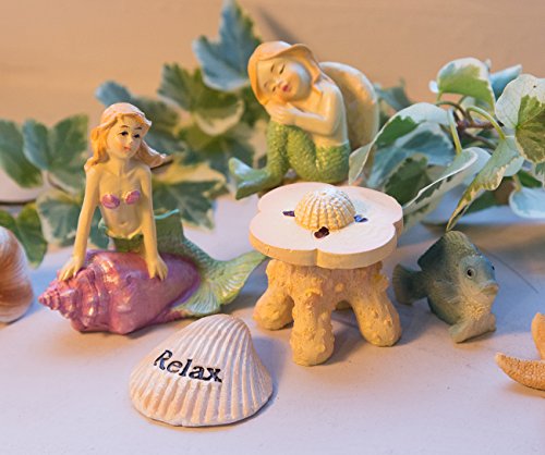 - MINIATURE MERMAID SET: Pack of 13 mermaids figurines and accessories in assorted colors, featuring mermaids, seashells, starfishes, fish, table, and chairs. An excellent craftsmanship piece for indoor and outdoor decorations.