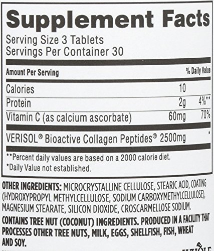 2500mg verisol bioactive collagen peptides per 3 tablet serving