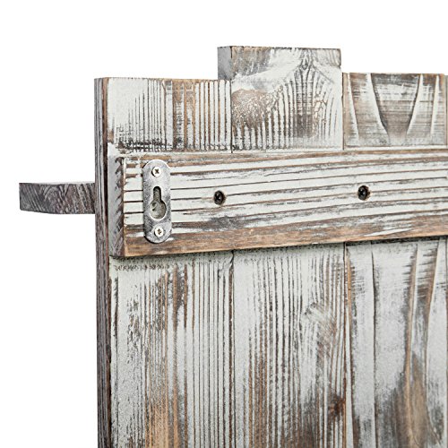 Vintage rustic wall hanging shelves with distressed whitewash finish.