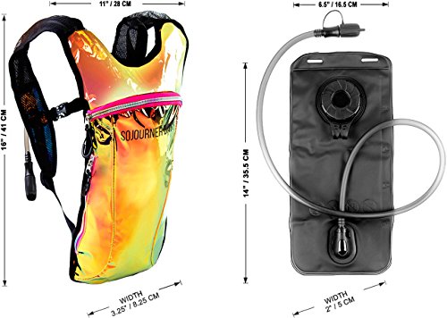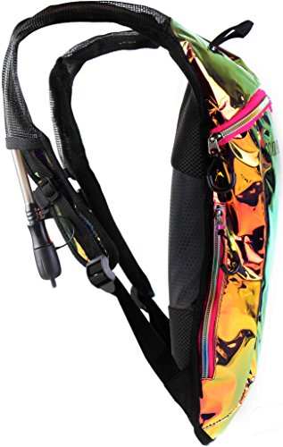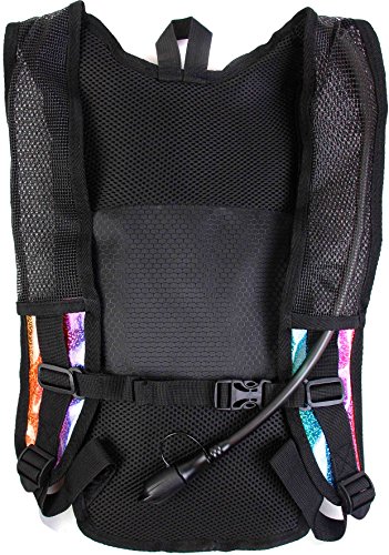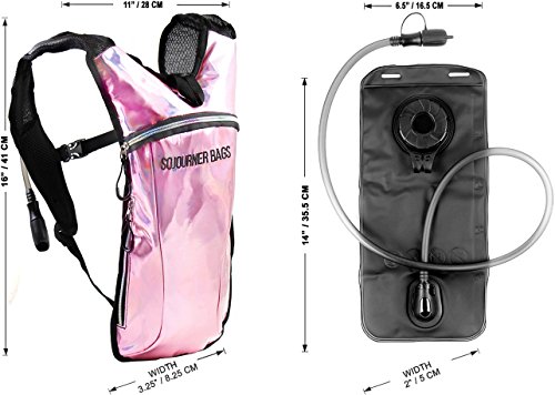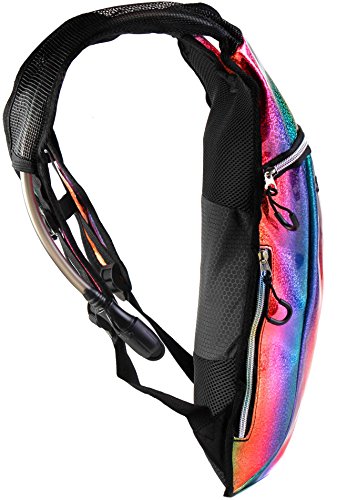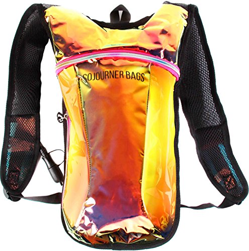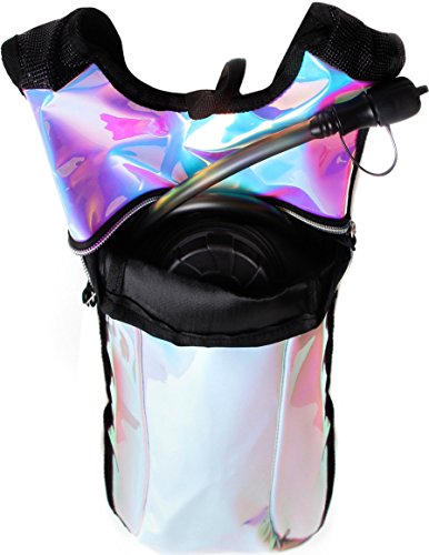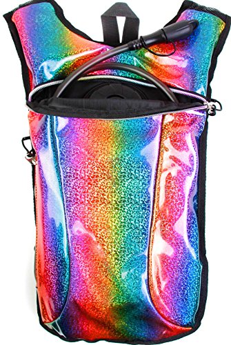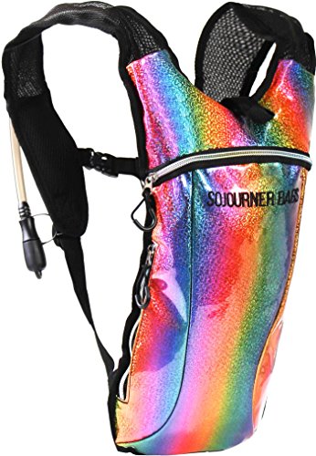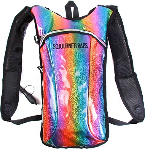SoJourner Hydration Pack Backpack - 2L Water Bladder included for festivals, raves, hiking, biking, climbing, running and more (Holographic Rainbow Glitter)