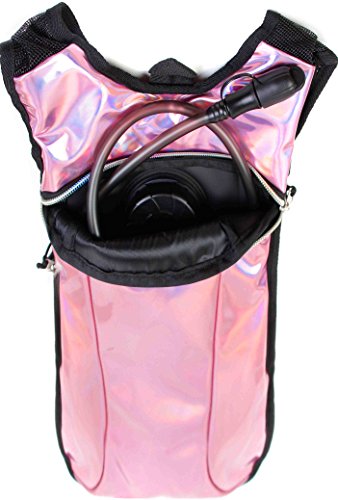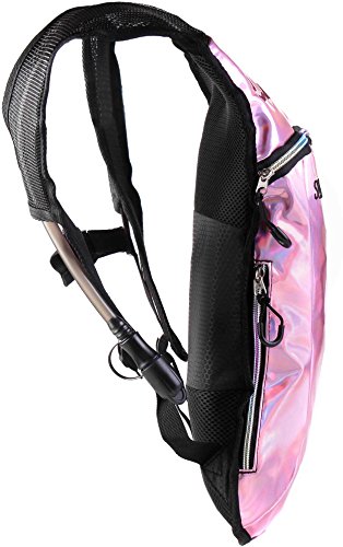 SoJourner Hydration Pack Backpack - 2L Water Bladder included for festivals, raves, hiking, biking, climbing, running and more (Holographic - Pale Pink)