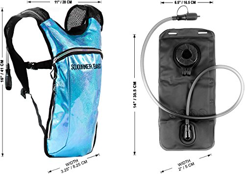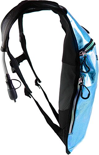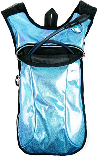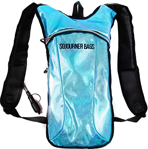 SoJourner Hydration Pack Backpack - 2L Water Bladder included for festivals, raves, hiking, biking, climbing, running and more (Glitter - Light Blue)