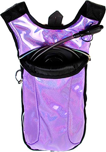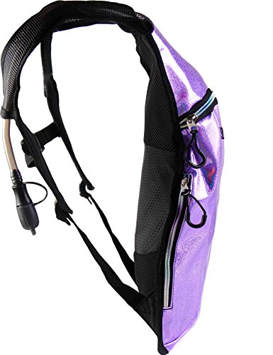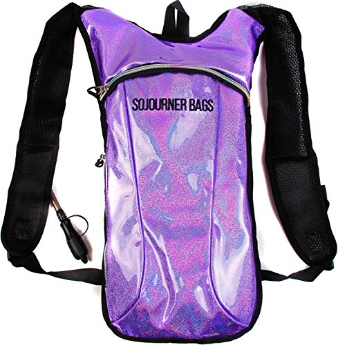 SoJourner Hydration Pack Backpack - 2L Water Bladder included for festivals, raves, hiking, biking, climbing, running and more (Glitter - Purple)