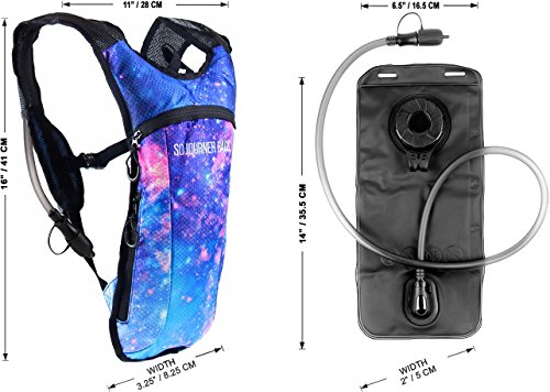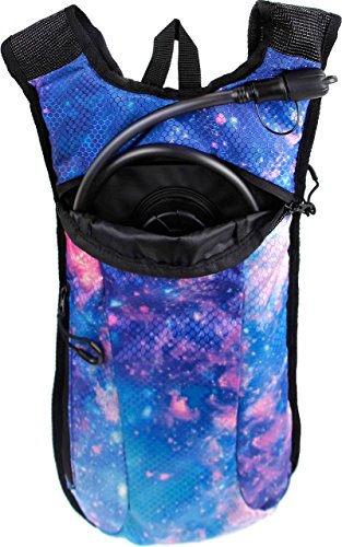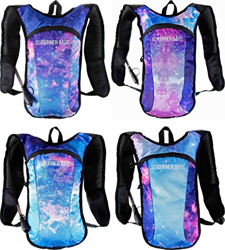 SoJourner Hydration Pack Backpack - 2L Water Bladder included for festivals, raves, hiking, biking, climbing, running and more (galaxy 1)