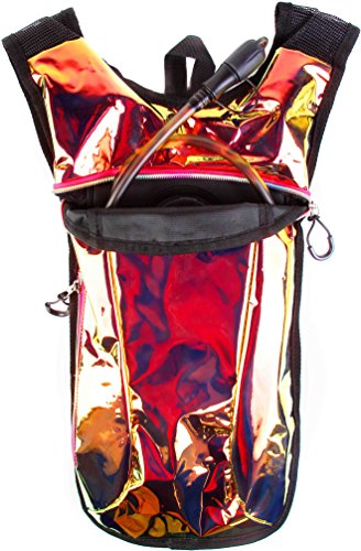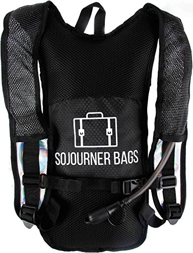 SoJourner Hydration Pack Backpack - 2L Water Bladder included for festivals, raves, hiking, biking, climbing, running and more (Transparent Pink Holographic)