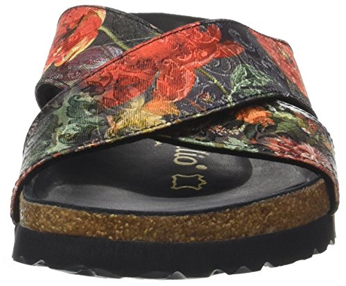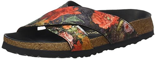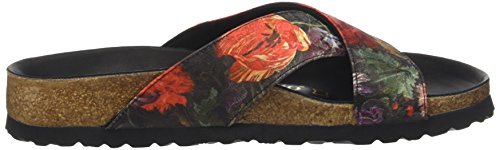 Binding : Apparel Product Description . The popular Papillio Daytona sandal boasts a clean-cut, slightly Asian-inspired design. The stylish crossover support with two wide and ultra soft leather straps ensures an excellent fit. The colorful floral print - which is inspired by baroque paintings - appears on black fabric and combines with flowers woven into the material for a versatile and feminine look. The footbed liner and outer edge of the footbed of BIRKENSTOCK Exquisite models are wrapped in very soft and supple nappa leather. Textile material made of natural fibers are extremely versatile. They can be printed on, dyed and easily combined with other materials. BIRKENSTOCK only uses high-quality textiles as upper material. The flexible leather lining, which is gentle on the skin, nestles up softly against your foot and adjusts to its contour. The open-pored and thus very breathable surface makes for a comfortable foot climate, even during more strenuous physical activity. Cork is a sustainable material extracted from the bark layer of the cork oak. This natural product is insulating and offers very good cushioning. EVA (ethylene vinyl acetate) is a high-quality, very light, elastic material with extremely good cushioning. As a result, it smooths out slight irregularities in the floor and ensures that every step is softly cushioned.. 0