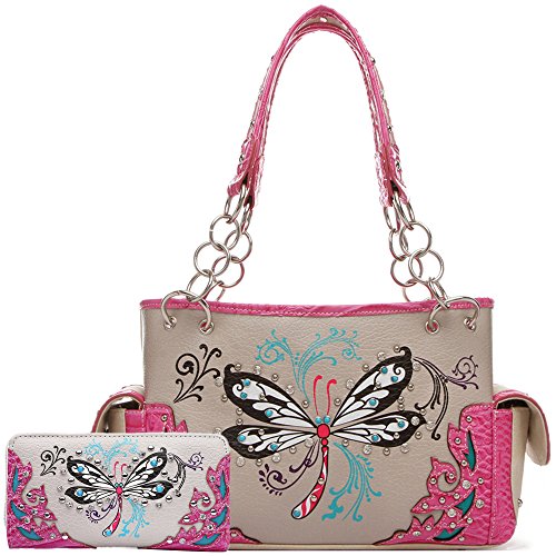 Western Style Rhinestone Dragonfly Spring Purse Concealed Carry Handbag Women Shoulder Bag Wallet Set