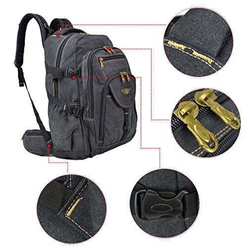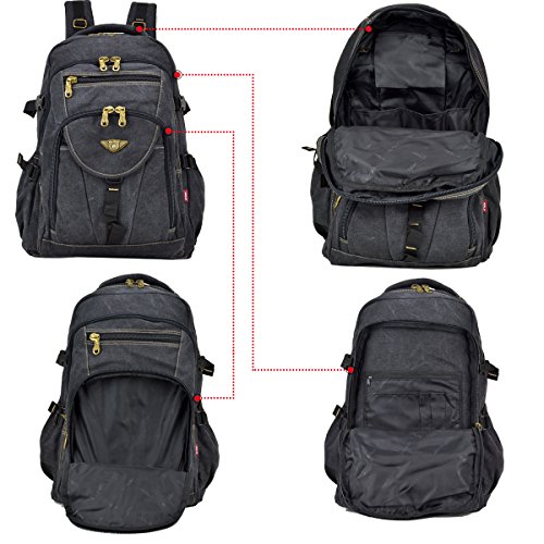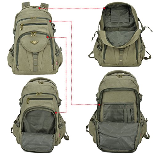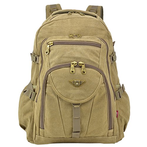 -. Title : DASEIN SPORTS Unisex Large Capacity Outdoor Vintage Canvas Adventure/Travel/Camping/Hiking/School Backpack Rucksack With 3 Compartments