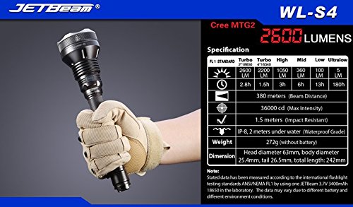 JETBeam WL-S4 Searchlight MT-G2 2600Lm w/ 2xJetbeam 3400mAh Batteries