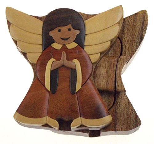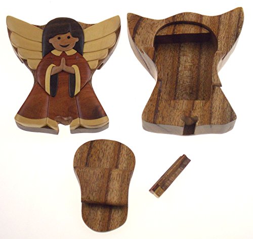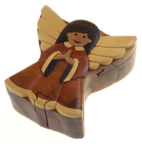 Studio : Hickoryville Publisher : Hickoryville Binding : Kitchen Product Description Handmade carved Angel intarsia wood puzzle box bundled with Hickoryville instructions on opening and closing the puzzle box. This secret puzzle box is a beautifully handcrafted creation, high quality workmanship, made of natural wood. The box is a puzzle that comes apart into four pieces and discovers a secret space to keep special treasures. Inside storage space is approximately 2.7 inches long x 2 inches wide. Every box is a unique, handcrafted creation and yours may vary slightly from the photos. 0