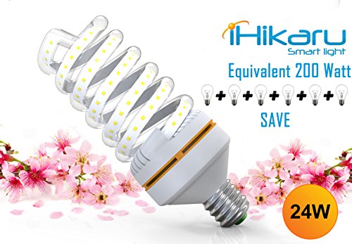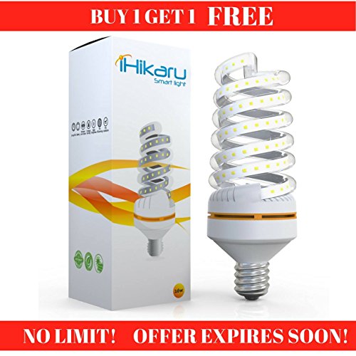 24 Watt Spiral LED Corn Light Bulb Equivalent 200 Watt Daylight (Buy 1 Get 1 Free Promo Coupon) Easy To Install E26&27 Screw Base For Outdoor Garage Factory Flood Light Street Lamp Post Lighting