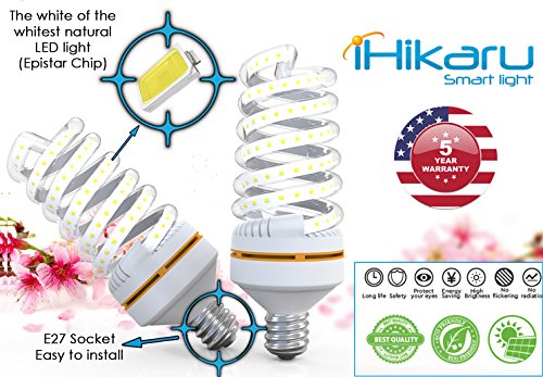 SIMPLE DESIGN!: Over 16 years! 35000 Hours Life! Simple spiral shape with the LED upgraded to the latest 2017 LEDs from Taiwan. SMD 2835 technology to obtain 120 lumens per watt and project light in 360 degrees. EASY INSTALLATION Connect directly into Medium E26 or E27 Bases and just screw in.