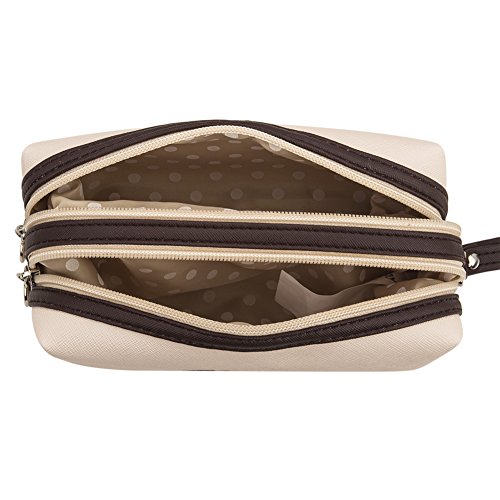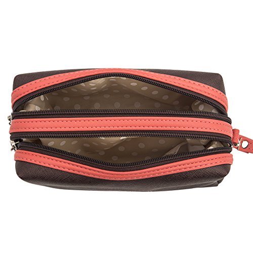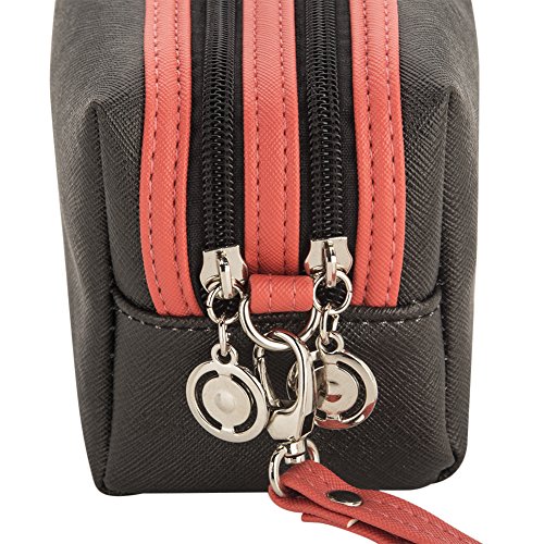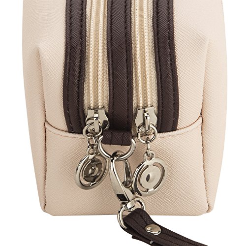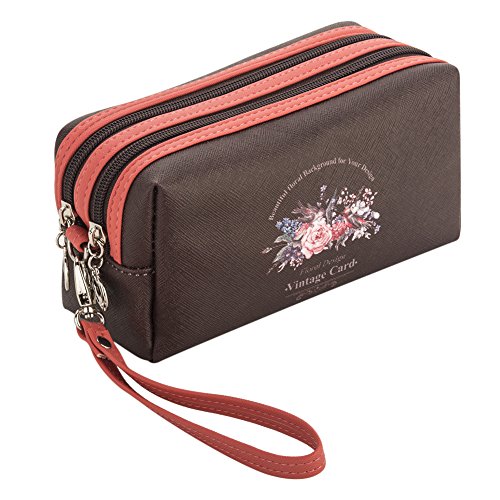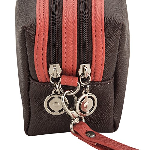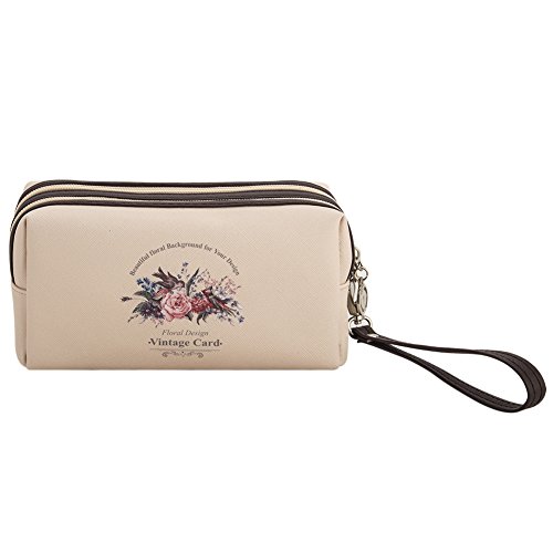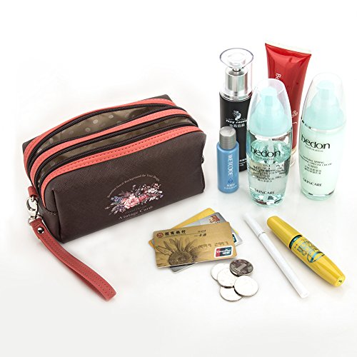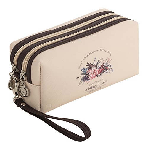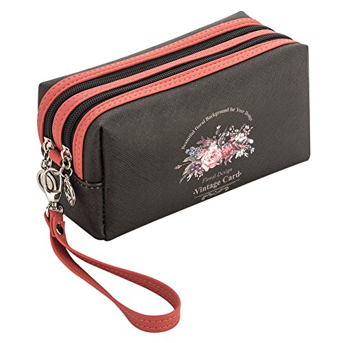 Made of 100% PU fabric polyester lining, the double zippers designed cosmetic bag is mould-proof and moisture-proof and durable. Thanks to the attention paid to its details, the bag is constructed with smooth zippers, uniform stitching and high-end hardware. There are 4 colors available for choose. You may use this beautiful bag as a makeup purse, a cosmetic organizer or a clutch bag as per your preference.