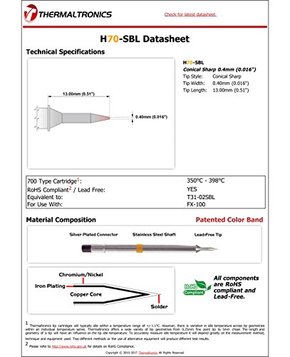 Thermaltronics H70-SBL Conical Sharp 0.4mm (0.016") interchangeable for Hakko T31-02SBL