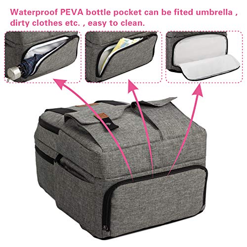 ❤CAPACITY: It's a big diaper bag-organizer with total 16 internal & external pockets for endless organization options, separate storage pockets include insulated pockets & wet clothes pocket. You can put milk bottle, water bottle, clothes, diaper, towel, etc. in different separate zones. It can hold two cans of milk powder, also if you need will fit your 15-inch laptop. It's a best choice for long distance travel. Diaper bag size: L 17.5", W 14", G 8"