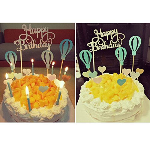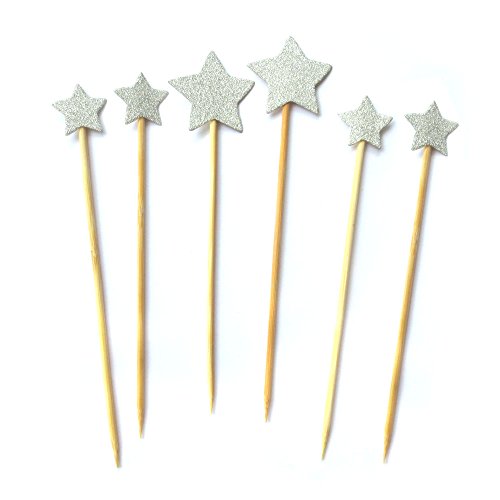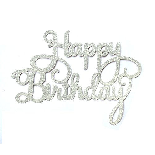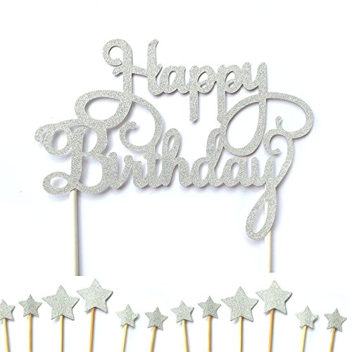 SarSean Silver Glitter Happy Birthday Cake Topper and 12PCS Star Cake Toppers