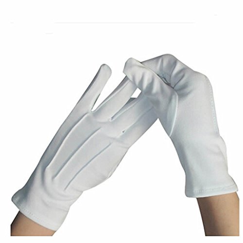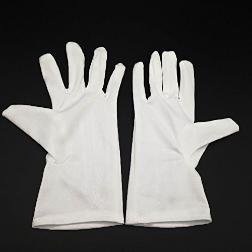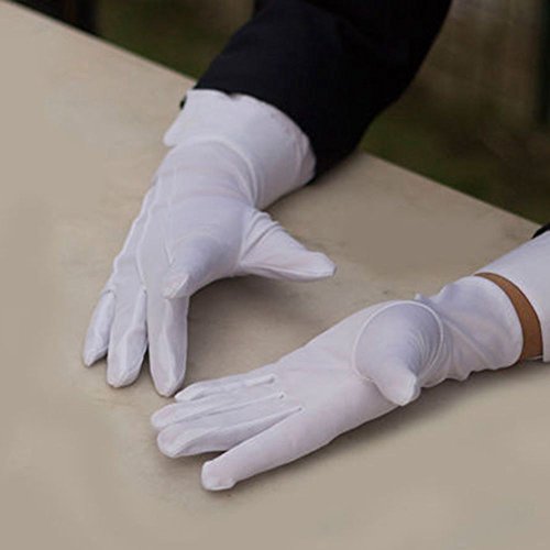 Binding : Apparel Product Description Features: Size: approx. 23 x 8cm / 9.06 x 3.15 inch. Common size: the gloves are approx. 23 cm/ 9.06 inches long from finger tip to the end of the glove, suitable for most men and women. Material: nylon ,cotton Color: White Perfect for Catering, Marching band, Santa, Parades, Inspection, Magician,Tuxedo Formals, Costume, Military, Doorman, Fire or Police Dress Uniform Elasticated wrists Special patterns: there are three seams on the front of gloves, different and special, making the gloves more fashionable and making you look more gentle and elegant.