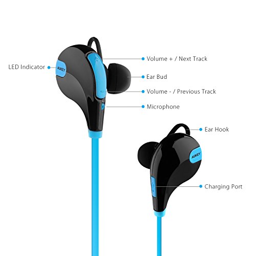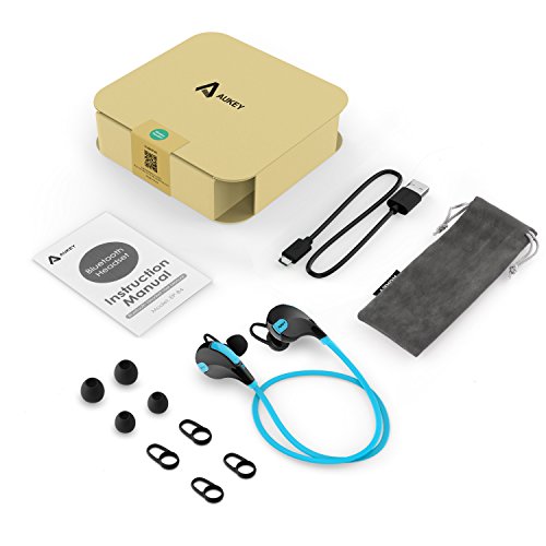 Package Content: Aukey EP-B4 Bluetooth Headset, USB Charging Cable, 6 x Ear buds (large, medium and small), 6 x Ear hooks (large, medium and small), User manual & Aukey 24 Month worry-free warranty