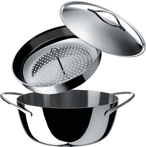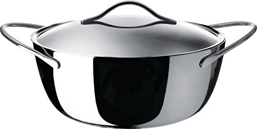 Alessi "Domenica" Casserole With Two Handles in Multiply (Aisi 430, Aluminium) With Steamer Basket And Lid in 18/10 Stainless Steel, Silver